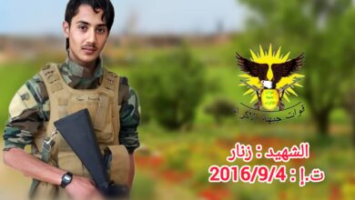الذكرى السنوية التاسعة لاستشهاد الشهيد ” زنار ” من قوات جبهة الأكراد الشهيد ” زنار ” ، من أبطال مناطق…