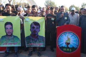 واختتمت المراسيم بقراءة وثيقات الشهادة وتسلميها لذوي الشهداء و وضع أكاليل الزهور على أضرحة الشهداء، وسط هتافات رفاقه وتعهدهم بمواصلة مسيرة النضال حتى دحر الإرهاب وتحقيق السلام الدائم.