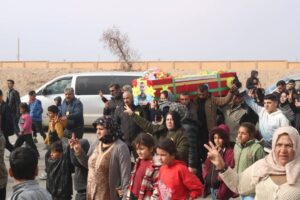 وانطلق موكب التشييع في تمام الساعة الحادية عشرة صباحاً من أمام المشفى الوطني في مدينة الطبقة، متوجهاً إلى مزار الشهداء، حيث اصطف المواطنون على جانبي الطريق، رافعين صور الشهداء ومرددين الهتافات التي تخلّد تضحياتهم وتعبر عن الوفاء لدمائهم.