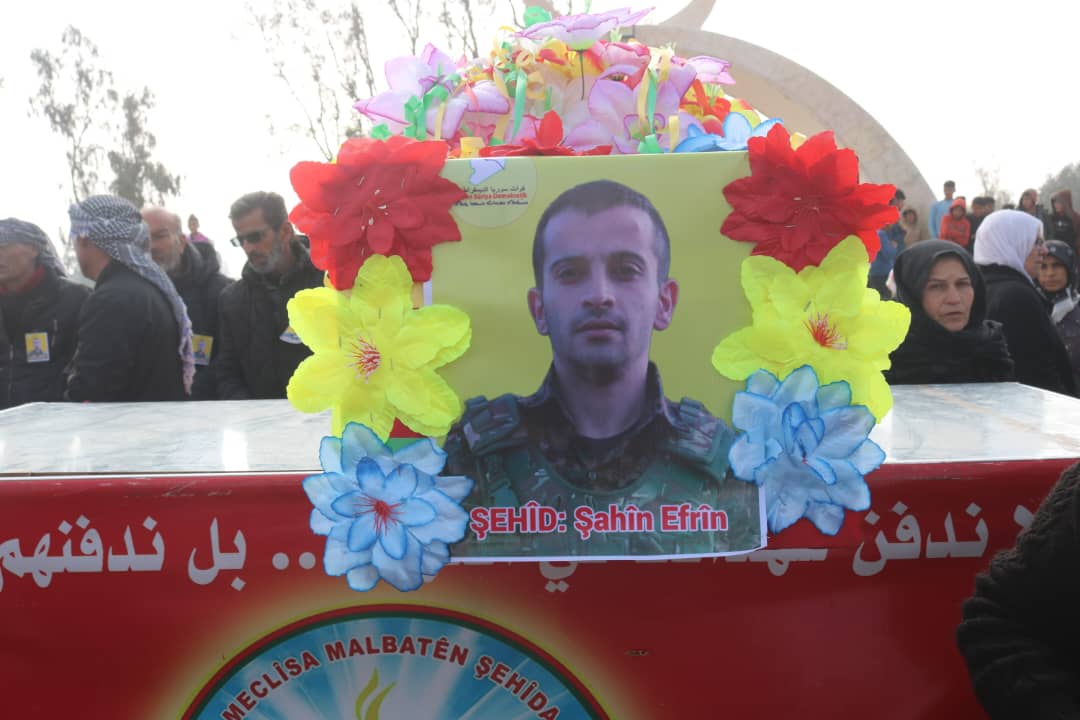 بمشاركة جماهيرية حاشدة، ودّع أهالي الطبقة والشهباء وعفرين، إلى جانب مقاتلي قوات جبهة الأكراد ووفود من المؤسسات المدنية والعسكرية، جثمان الشهيد (شاهين عفرين)، أحد مقاتلي قوات سوريا الديمقراطية، الذي ارتقى شهيداً خلال دفاعه عن أرضه وشعبه.